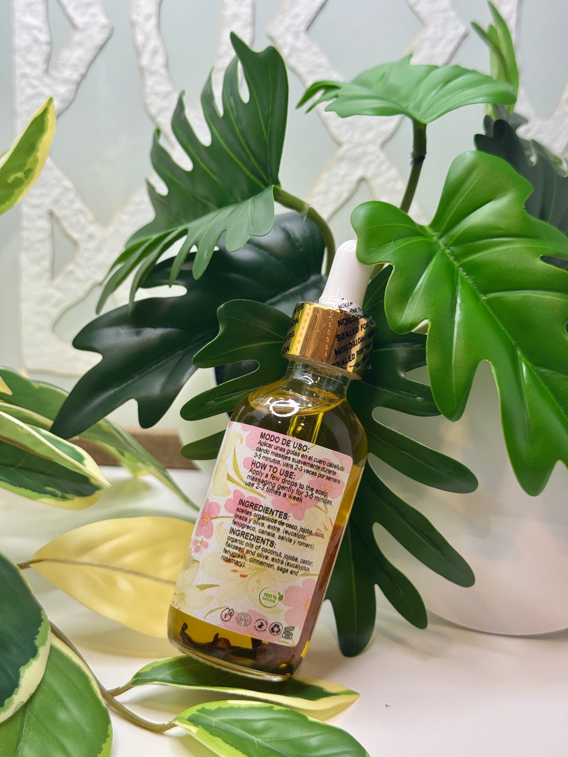 *Based plant, Mixture of organic oils that stimulate hair growth. Stops hair loss, enriched with vitamin E and peppermint oil.